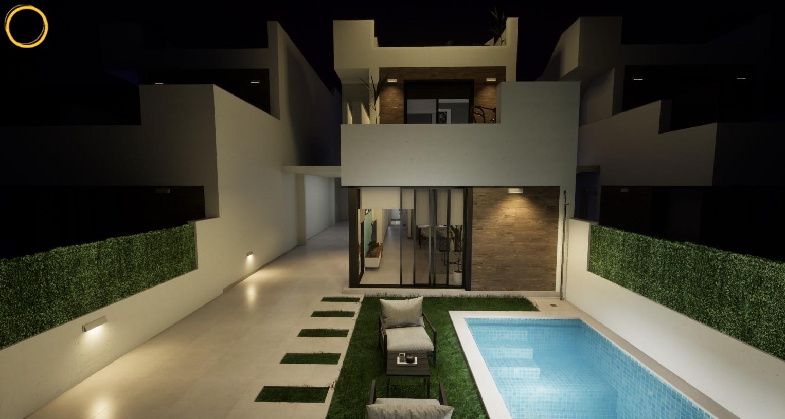 Het is een luxe complex van 10 villa's met privézwembad en een overdekte garage voor elke woning. Villa's hebben 3 slaapkamers en 2 badkamers. De meeste villa's hebben een geweldig uitzicht op zee en liggen op slechts 5 minuten lopen van het strand en het stadscentrum. De villa's zijn verdeeld over 3 verdiepingen. De begane grond bestaat uit een tweepersoonsslaapkamer aan de achterkant, een badkamer, de open volledig ingerichte keuken die uitkomt in de open woon-/eetkamer met uitzicht over het zwembad. Op de tweede verdieping bevinden zich de tweede en derde slaapkamer, waarbij de slaapkamer aan de voorzijde een eigen privéterras heeft waar veel zon binnenkomt. Ten slotte op de derde verdieping het privésolarium, het juweel van de villa, met de hele dag zon voor zonaanbidders en uitzicht over de Mar Menor en naar La Manga. Vraag vrijblijvend het volledige dossier en reserveer een bezoek ter plaatse.